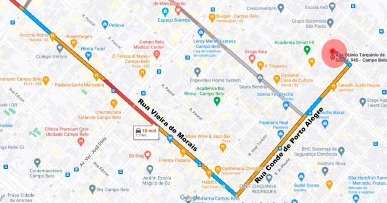 Seguindo Pela Rua Vieira de Moraes sentido aeroporto, Vire à esquerda na Rua Conde de Porto Alegre, Vire à esquerda na Rua Otávio Tarquínio de Sousa Siga até o número 945.